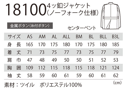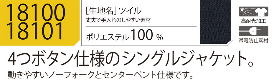 ユニフォーム&安全靴のジーベック 【XEBEC】 オールシーズン用作業服(セキュリティ) 18100/4ッ釦ジャケット