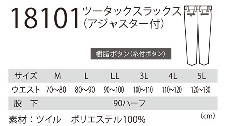 ユニフォーム&安全靴のジーベック 【XEBEC】 オールシーズン用作業服(セキュリティ) 18101/ツータックスラックス