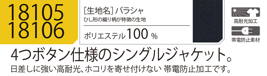 ユニフォーム&安全靴のジーベック 【XEBEC】 オールシーズン用作業服(セキュリティ) 18105/4ッ釦ジャケット