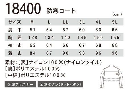 ユニフォーム&安全靴のジーベック 【XEBEC】 オールシーズン用作業服(セキュリティ) 18400/防寒コート