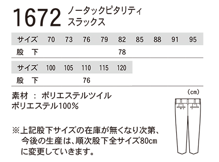ユニフォーム&安全靴のジーベック 【XEBEC】 オールシーズン用作業服(サービスウェア) 1672/ノータックピタリティスラックス