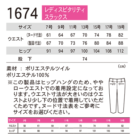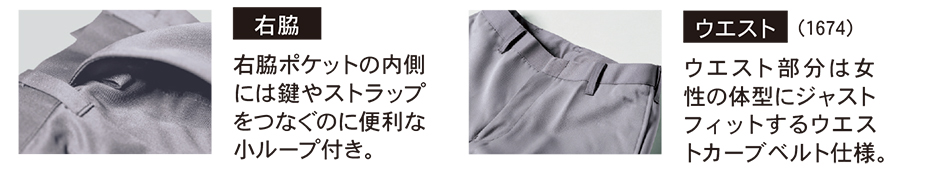ユニフォーム&安全靴のジーベック 【XEBEC】 オールシーズン用作業服(サービスウェア) 1674/レディスピタリティスラックス