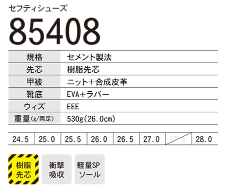 ユニフォーム&安全靴のジーベック 【XEBEC】 オールシーズン用作業服(シューズ) 85408/セフティシューズ