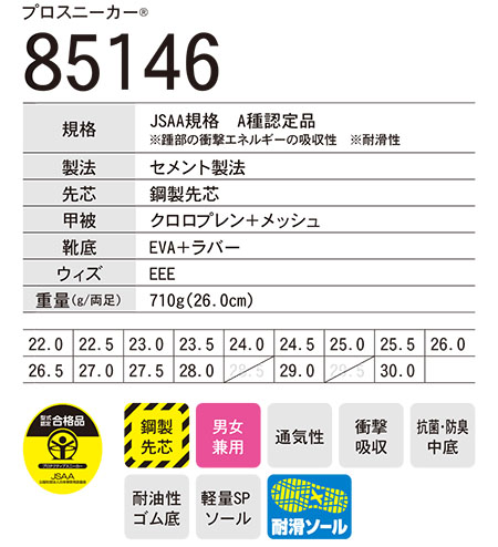 ユニフォーム&安全靴のジーベック 【XEBEC】 オールシーズン用作業服(シューズ) 85146/プロスニーカー