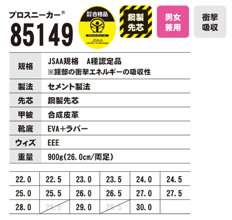 ユニフォーム&安全靴のジーベック 【XEBEC】 オールシーズン用作業服(シューズ) 85149/プロスニーカー