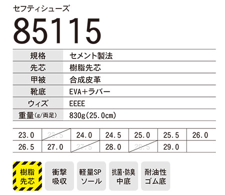 ユニフォーム&安全靴のジーベック 【XEBEC】 オールシーズン用作業服(シューズ) 85115/セフティシューズ