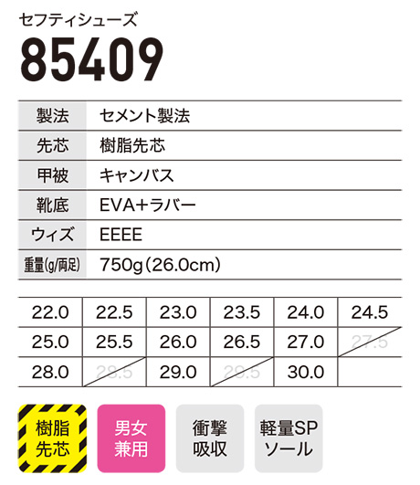 ユニフォーム&安全靴のジーベック 【XEBEC】 オールシーズン用作業服(シューズ) 85409/セフティシューズ