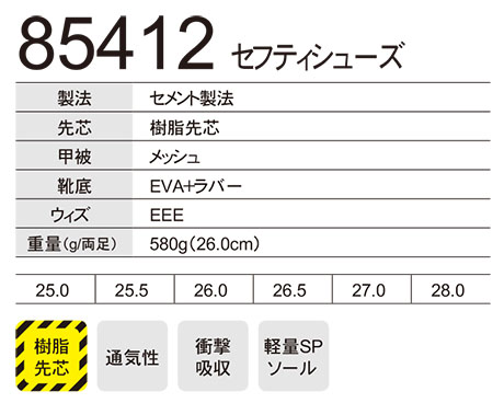 ユニフォーム&安全靴のジーベック 【XEBEC】 オールシーズン用作業服(シューズ) 85412/セフティシューズ