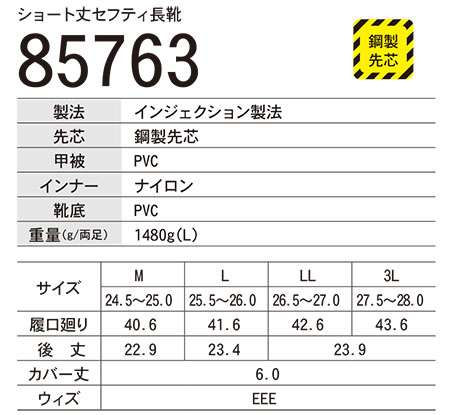 | 85763/ショート丈セフティ長靴 |