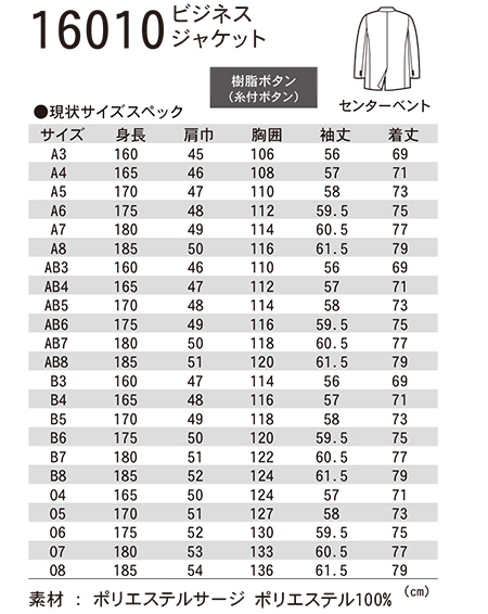 16010/ビジネス ジャケット |