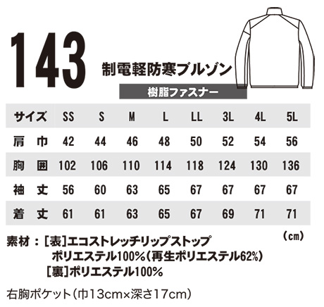 143/制電軽防寒ブルゾン