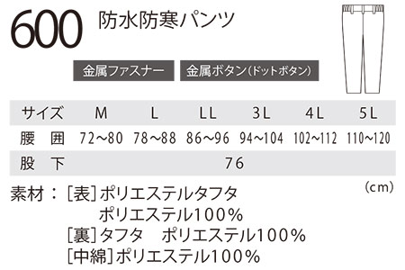 600/防水防寒パンツ |
