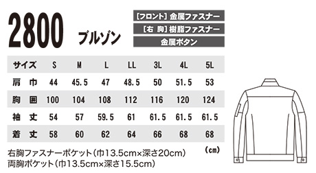 ユニフォーム&安全靴のジーベック 【XEBEC】 秋・冬用作業服(ワークウェア) 2800/ブルゾン