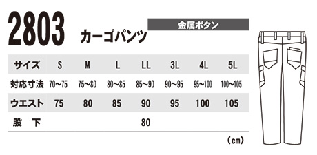 ユニフォーム&安全靴のジーベック 【XEBEC】 秋・冬用作業服(ワークウェア) 2803/カーゴパンツ