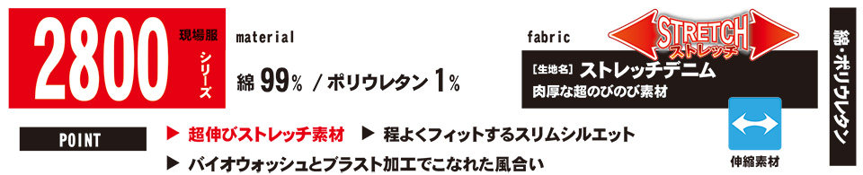 素材 ストレッチデニム (綿99%・ポリウレタン1%)
