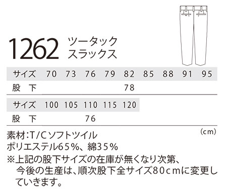 「ツータックからワンタック」に、シルエット変更させて頂きます。 |