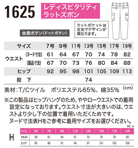 1625/レディスピタリティラットズボン |