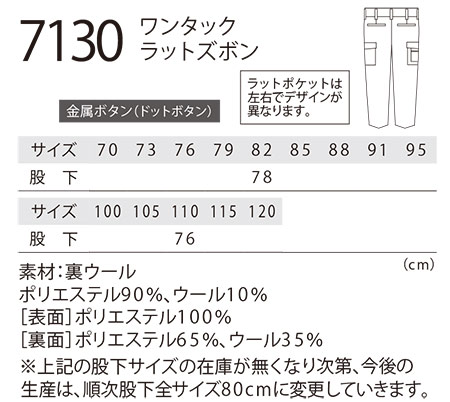 | W105〜W120は、標準価格の(税込:165円UP) |