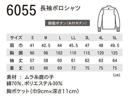 6055/長袖ポロシャツ |