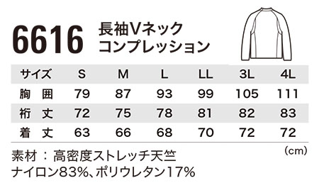 6616/長袖Vネックコンプレッション |