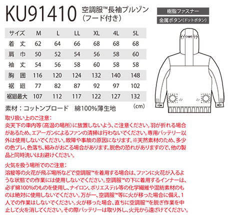 ジーべックの作業服(春・夏)空調服 KU91410/空調服TM 長袖ブルゾン