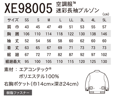 空調服® 迷彩長袖ブルゾン |