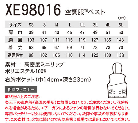 ジーべックの作業服(春・夏)空調服 XE98016/空調服TM ベスト