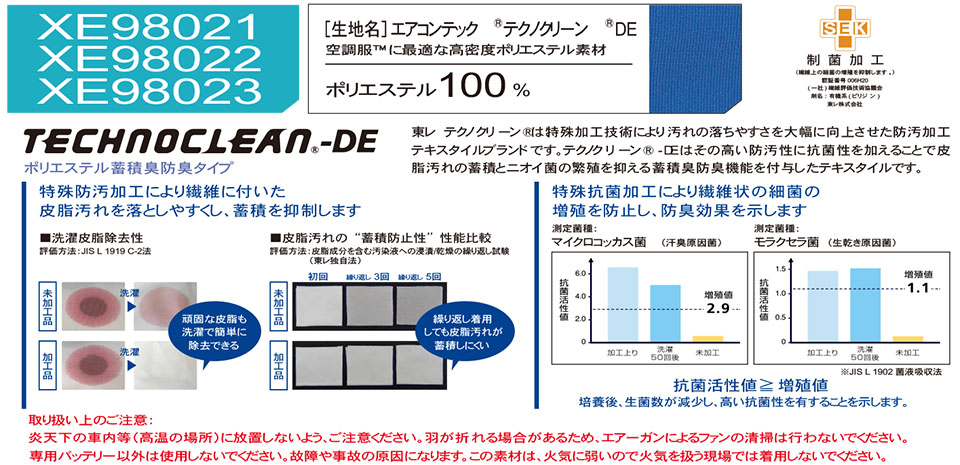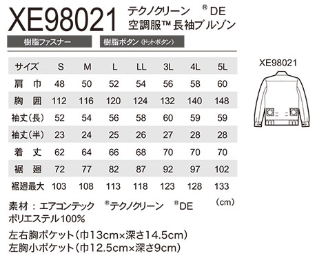XE98021/空調服® テクノクリーン®DE 長袖ブルゾン |