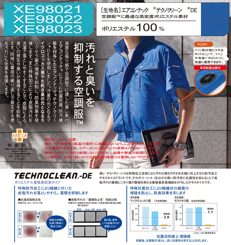 XE98022/空調服® テクノクリーン®DE 半袖ブルゾン |