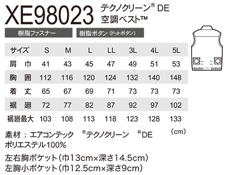 XE98023/空調服® テクノクリーン®DE ベスト |