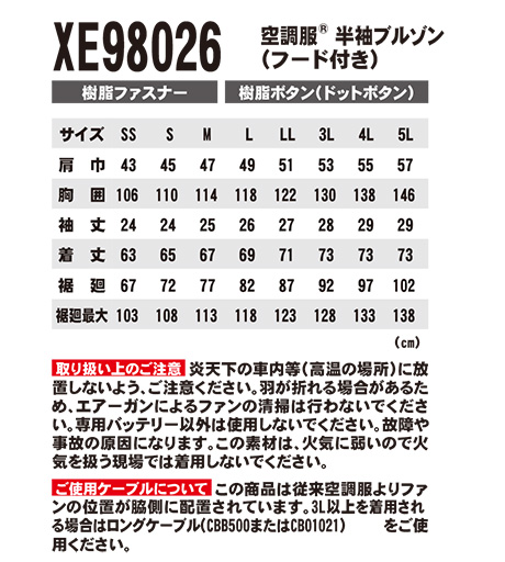 ジーべックの作業服(春・夏)空調服 XE98026/空調服 半袖ブルゾン