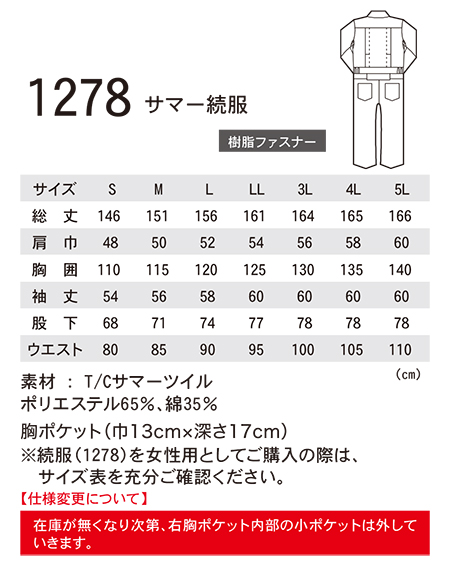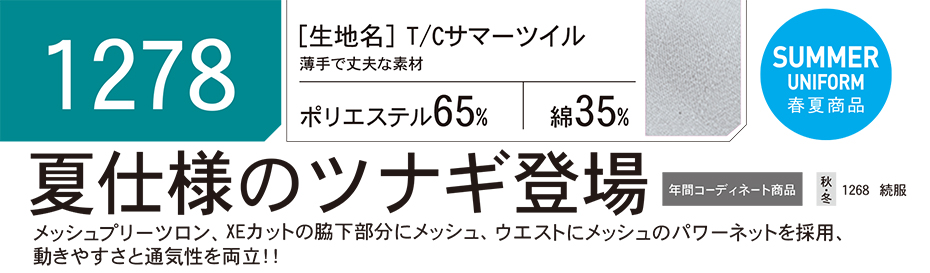 ユニフォーム&安全靴のジーベック 【XEBEC】 春・夏用作業服(オーバーオール) 1278/サマー続服