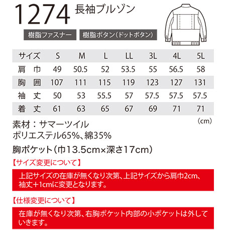 1274/長袖ブルゾン |