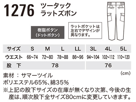 1276/ツータックラットズボン |