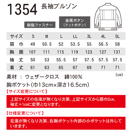 1354/長袖ブルゾン |