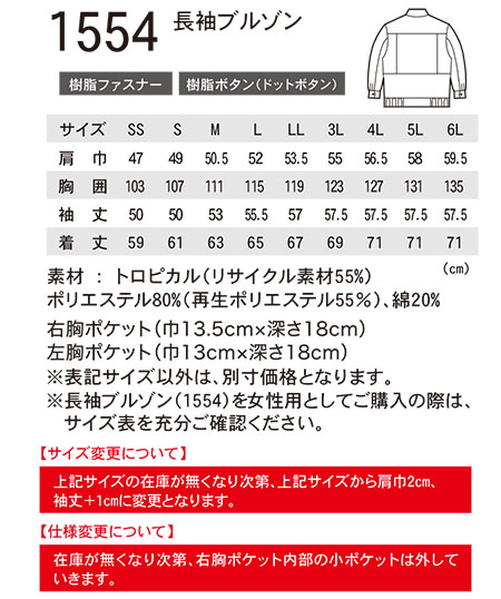 1554/長袖ブルゾン |