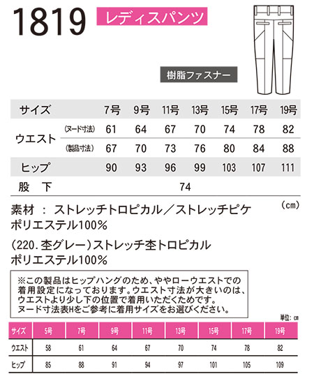 | W105〜W120は、標準価格の(税込:165円UP) |