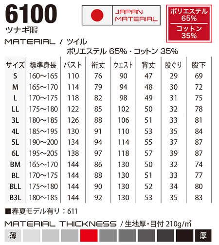 ヤマタカつなぎ服(オールシーズン)ツナギ服 6100/ツナギ服