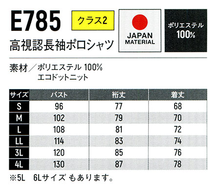 ヤマタカつなぎ服(高視認性安全服) E785/高視認長袖ポロシャツ