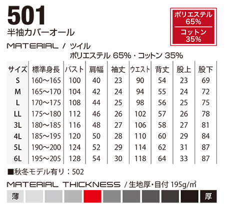 ヤマタカつなぎ服(サマーシーズン)ツナギ服 501/半袖カバーオール