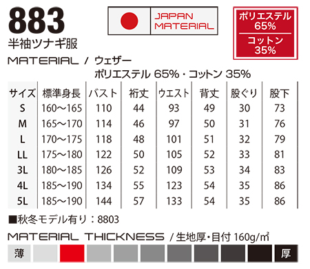 【883】半袖ツナギ服 |