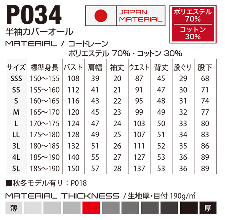 ヤマタカつなぎ服(サマーシーズン)ツナギ服 P034/半袖カバーオール